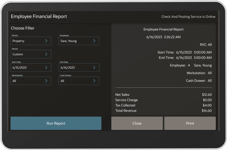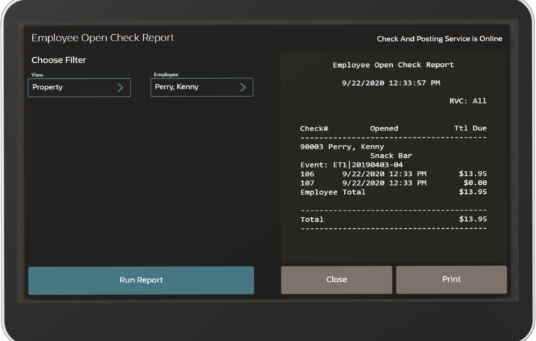 Balance your daily sales data using the Employee Open Check report