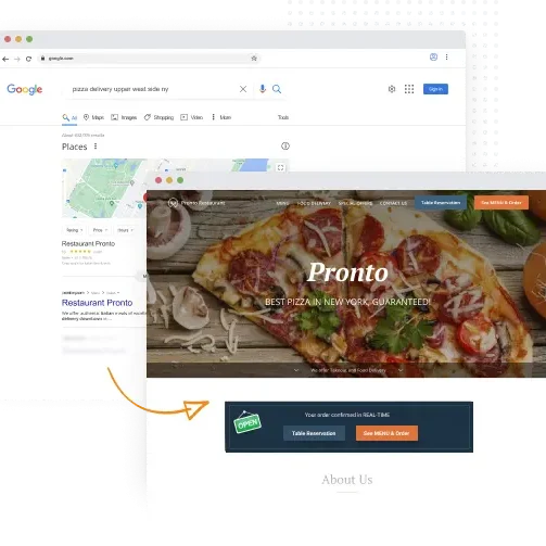 When your customers are searching for keywords, like your cuisine type (i.e., pizza) and your location, you want to be the one that appears on the first page of Google results. With the Search Engine Optimization already done for you, it's easier to focus on managing other aspects of your business.