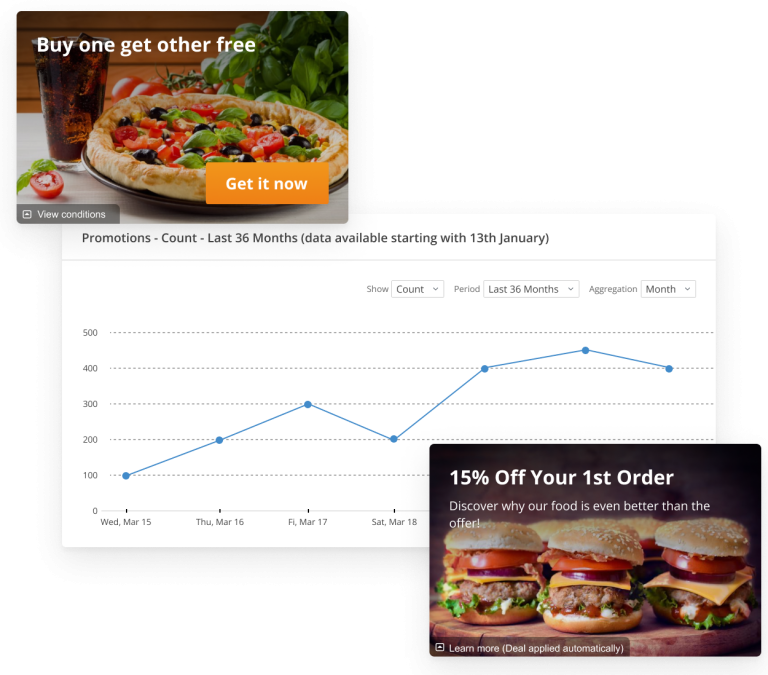 Our websites provide your business with a powerful promotions mechanism. Tempt first-time visitors with an irresistable offer and expand your returning customer base. And ultimately, sell more.