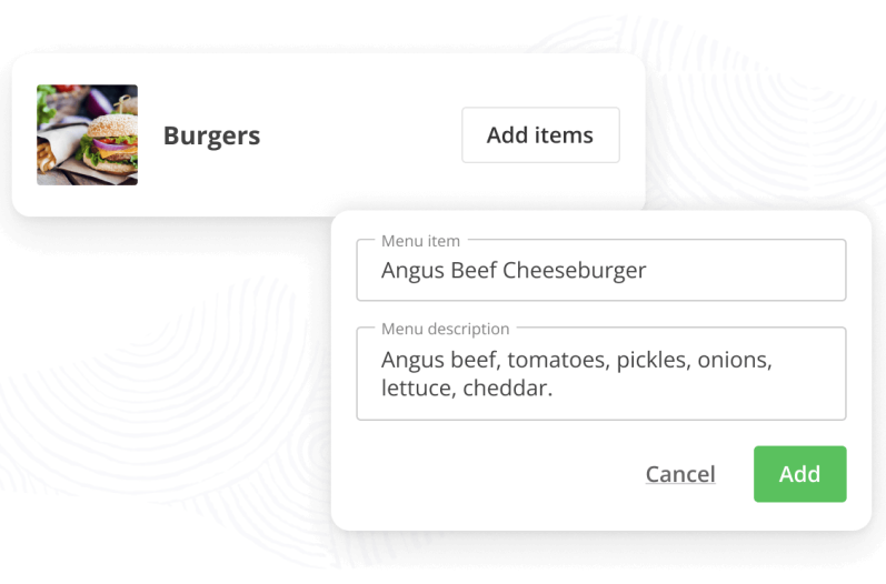 Create a variety of menu modifiers (i.e., toppings, dressings, cooking instructions, etc.)