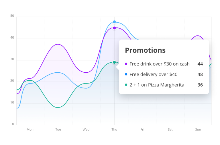 The brighter the red, the bigger the number of orders you get from that area. Spark even more orders in highly-profitable areas, by choosing between carefully-crafted promos from the list.