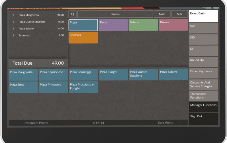 Our POS features an optimized user interface design, in which each menu category is matched with a specific color.