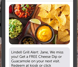 Texts are sent to customers with an incentive to come back at 20, 40, 60, 80 and 100 days.