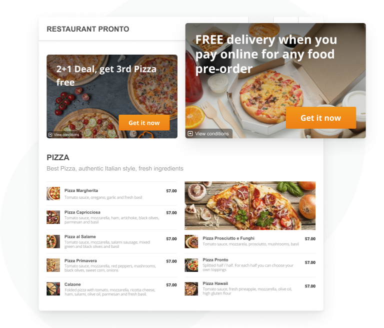 With our free restaurant pre-order system, you can encourage more customers to order and pay in advance when they or for pickup, delivery & dine-in with a special discount or promotion.